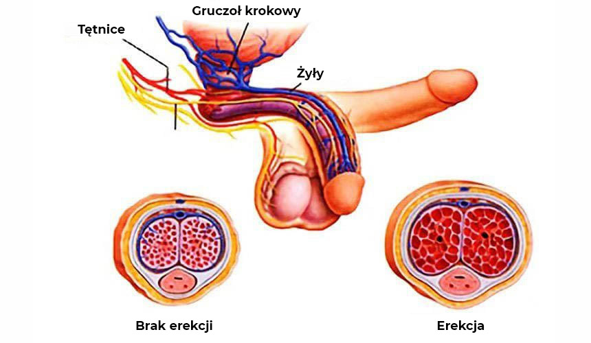 Ерекція викликається зовнішніми факторами, які впливають на вивільнення оксиду азоту та інших нейромедіаторів, що, у свою чергу, підвищують кров’яний тиск. Печеристі тіла пеніса наповнюються кров’ю, збільшуючи свої розміри у 4-10 разів.